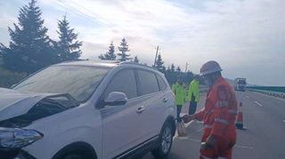 8月10日,武威清障救援大队在G30连霍高速上行线K1777公里处快速处置了一起单方事故。下午14:27分,大队值班室接到省交通调度指挥中心电话通知,在G30连霍高速上行线K1777公里处发生一起小车撞护栏事故,道路半幅通行,需要紧急救援。接警后,大队执勤队员立即赶赴现场。队员们到现场后,马上布置现场安全防护区域,防止发生二次事故,并做好对事故车及人员的消毒防疫工作。随后,等待交警、路政部门勘察完现场后开展1清障作业。
