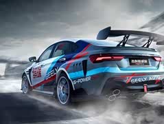 吉利缤瑞F-type racing。车头前方出了黑色大嘴蜂窝状中网之外,另外还有可调节的碳纤维前铲,车身侧面则提供了宽体大包围套件,车身离地间隙进一步降低,尾部更是安装了夸张的固定式碳纤维尾翼。另外车身侧面还可以看到赛道车身拉花装饰,尾部提供了更夸张的4根粗壮排气管出口,再加上车身侧面很明显的高强度合金锻造轮毂以及大尺寸多活塞刹车卡钳,很明显该车型针对民用市场的概率并不大,很有可能是为下一步国内汽车赛事而准备,当然也不排除公开发售的可能性。