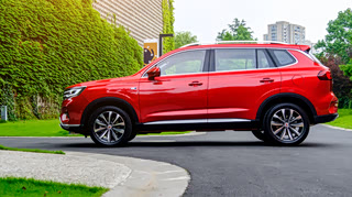 荣威RX5 Max。从车身侧面去看,荣威RX5 Max更是有着优雅的身姿,平直的腰线搭配上黑色的侧裙,体现出了极强的运动气息。当然,内部空间方面更是荣威RX5 Max的亮点,空间明显比竞品H6大上一圈。
