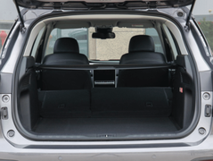 广汽传祺GS5的车尾设计非常精妙,后车窗上部有个小鸭尾的造型,里边还嵌入了一条高位刹车灯,把美观和实用性结合得特别到位;而中间一条银色的镀铬饰条连接两侧尾灯,与车头相互呼应;底部银色护板两侧是双边共双出的尾排,显得动感十足,可惜不是真排气口,只是个封死的装饰而已,实际上真正的排气口在底部,是隐藏式的。后尾门尺寸非常大,打开后开口很低,特别方便装卸货物,内部容积也不小,满足我们日常储物需求完全没问题;后排座椅靠背支持按比例放倒,但是不能放至纯平的状态,略有遗憾。