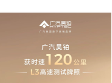 广汽昊铂首获时速120公里的L3高速测试牌照