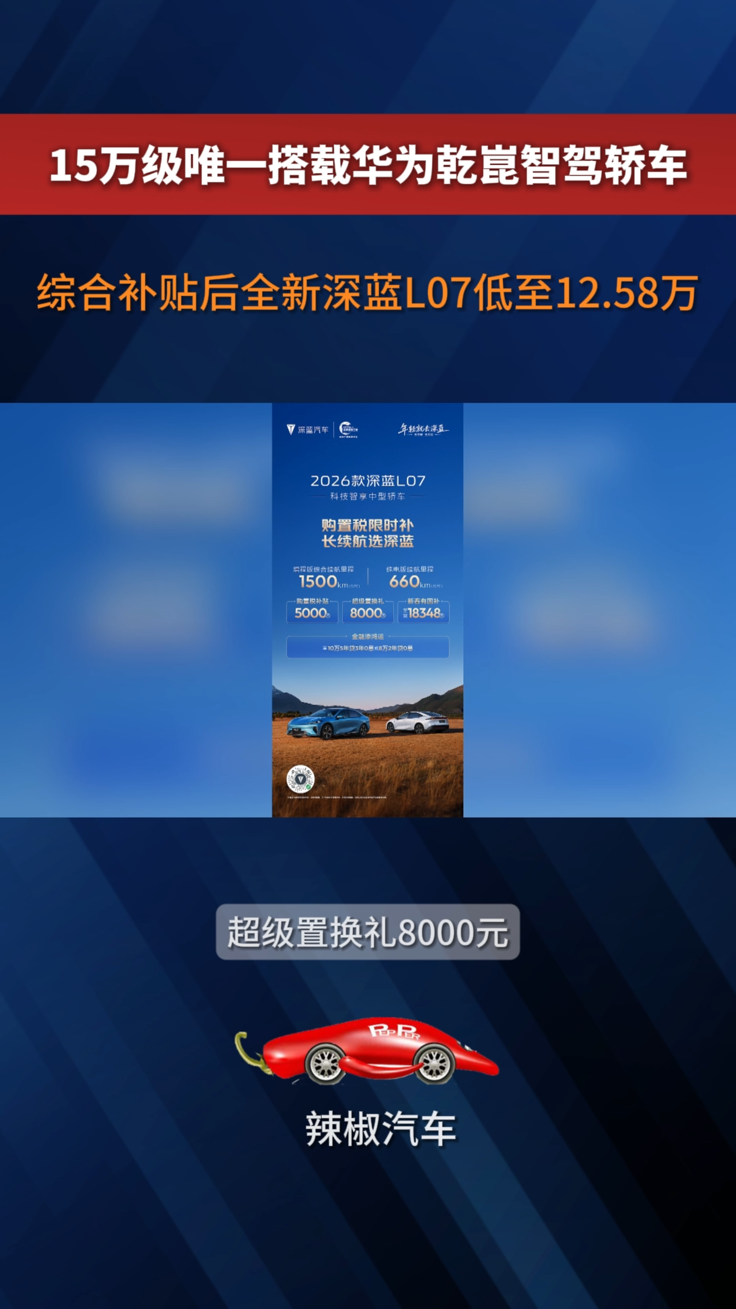 15万级唯一全系标配华为乾崑智驾轿车 深蓝L07限时补贴价12.58万