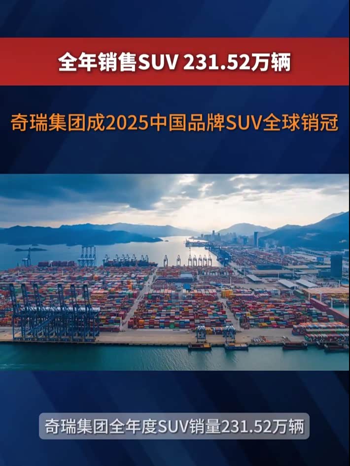 奇瑞集团成为2025中国品牌SUV全球销冠