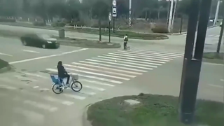 骑单车的女子人行道上遭小货车撞飞,家人查看监控后,直接晕了