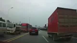 监控:女司机再次神操作!高速公路一脚急刹车,被大货车直接撞碎
