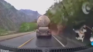 黑衣的行人突然不见,下一秒大客车就出事了,监控拍下诡异的一幕