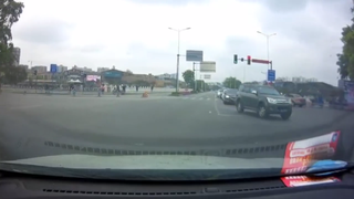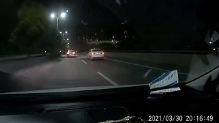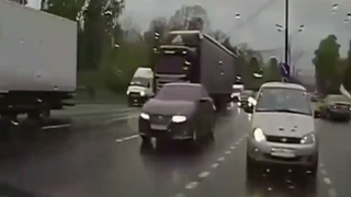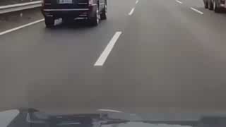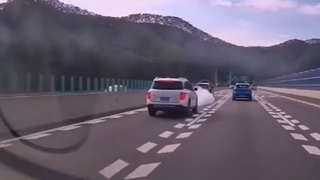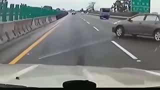 小车在高速路上行驶被货车撞击,瞬间被甩到一边