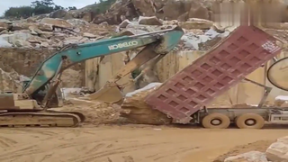挖掘机给大货车装巨石,这技术,大货车司机心里很不爽吧?