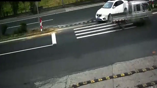 监控拍下的车祸,电动车和轿车路口发生猛撞