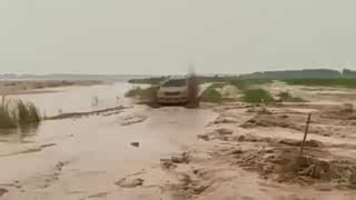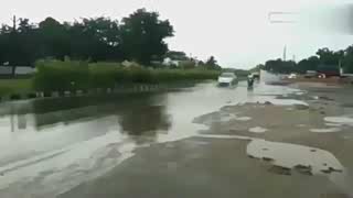 监控:货车猛的冲进积水路段,局面很危险