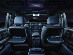 劳斯莱斯幻影,车尾采用了大溜背的样式,车顶线条在C柱附件缓缓下降,线条十分舒展、流畅。矩形的尾灯组采用LED光源环绕,从而呼应前大灯组设计,给人带来一定科技感的同时,又不失劳斯莱斯品牌应有的设计之美。车内美轮美奂,大面积诗米安材质搭配蓝色小牛皮材质和棕色的真皮沙发座椅,带来了更加舒适的乘坐感受。车顶是天文现象和宇宙天体的结合体,还加入了刺绣工艺的脉冲星图案,再配合着遍布车顶、门板四周的星点,就如同在浩瀚的宇宙中遨游。