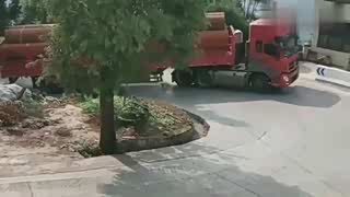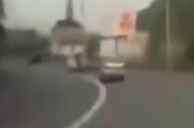 远处滚来奇怪“暗器”,司机不慎碾过,瞬间天旋地转监控吓人