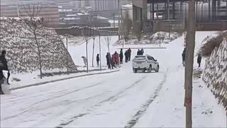 又陡又滑的大雪坡,丰田霸道一次次挑战倒着上去,名副其实的霸道