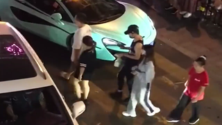 斑马线遇到宾利添越和迈凯伦跑车,场面壮观,路人围堵鉴赏