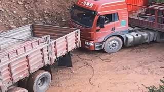 半挂车轮胎打滑上不去,空车还拉不动,换个重车才能拉上去!