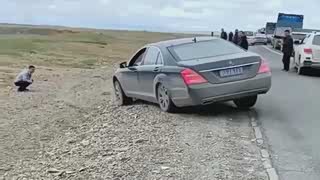 奔驰四驱车果然不一样,遇到高速路堵车直接走土路,太有面子了!