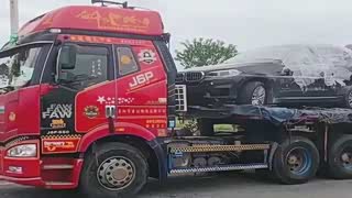 超级大件运输半挂车出动,居然还用剩余空间运了辆车!