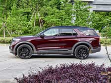 在侧面来看,福特探险者侧面的线条非常的锋利,且微微向后延伸,看上去动感十足,侧面采用的是双腰线的设计,给人营造出一种十足的层次感,略微悬浮式的车顶搭配车顶行李架,让车子的运动风格更加浓郁,侧下方的镀铬