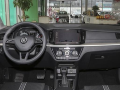 斯柯达-柯米克的内饰:整个内饰主打的色调是黑红两种颜色,T字型的中控台设计,大面积都是软质材料包裹,辅助材料用镀铬饰条加以点缀。左方是三幅式方向盘外加机械化的仪表盘,中央是8英寸的液晶显示屏,内置GPS导航,语音通话,电视以及音乐,内容丰富多彩。中高配置的车辆采用了皮质混搭的座椅,而且织物的是菱形纹路,触感及视觉提升了不少,前后排云有一个12v的点烟器接口可供实用。
