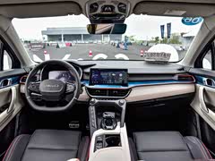 领克05。进入到内饰,小编觉得内饰的科技感与时尚感还是挺强的,中控台区域的造型比较饱满,具有一定的肌肉感,且中控台区域还采用了比较精细的缝线设计,非常精致。空调出风口采用的是贯穿式的设计,造型美观,而且也比较潮流。档把的造型也比较别致。12.3英寸的全液晶仪表盘把内饰的科技感得到了很大的提升,12.7英寸的触控式液晶中控屏使用非常流畅,内部的功能也比较齐全。平底式的方向盘采用了皮质或真皮材质包裹,造型还是非常时尚的。