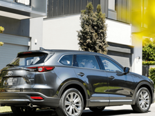 马自达CX-9。车尾部分大气感很强,也带来了一种厚实的质感,但是后挡风玻璃的占比面积并不是很大,并且采用的是前倾式设计,所以比较时尚。车尾的尾灯采用的是天使眼风格,镀铬饰条的装饰也给整体增添了不少的精致感