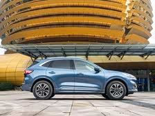 福特锐际侧身看起来动感十足,采用了非常柔和的曲面设计,突出了强烈的肌肉感,而前后风挡以及D柱的倾斜度变得更大,能够有效降低风阻。福特锐际在尾部的设计上也非常显眼,示宽灯以及刹车灯,全部采用LED光带式设计