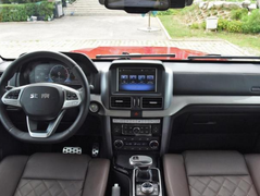BJ80。车子在内饰设计部分给人一种全然不同的感觉,因为在用料以及配色方面相当认真,品质感也表现得非常不错,多功能方向盘握感扎实,操作便捷。内嵌式的中控屏尺寸一般,但是显示清晰细腻,功能丰富,在中控屏下方