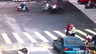 惨痛教训!骑车逆行,结果被小车撞散架