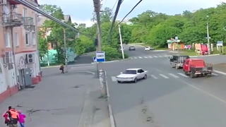 这种司机简直就是马路杀手,急速转弯引发侧滑,结果撞上了电线杆