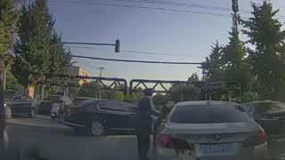 开宝马就可以这么瞧不起人?撞了车还想走,下车直接拉开他的车门