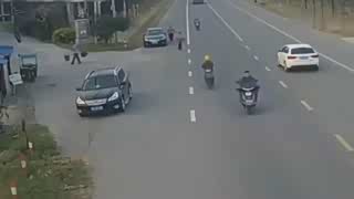 监控:老大爷专挑电动车女子碰瓷,这下撞的不轻