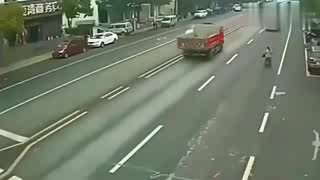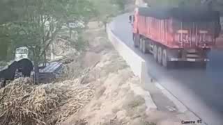 监控:弯道超车这是大忌,大货车司机不懂?用生命换来一个教训!