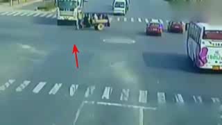 一车9个人全被撞翻在地,闯红灯发生的车祸,该心疼他们吗?