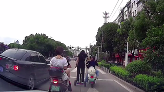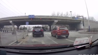 摩托车和SUV互不相让,这下有好戏看了