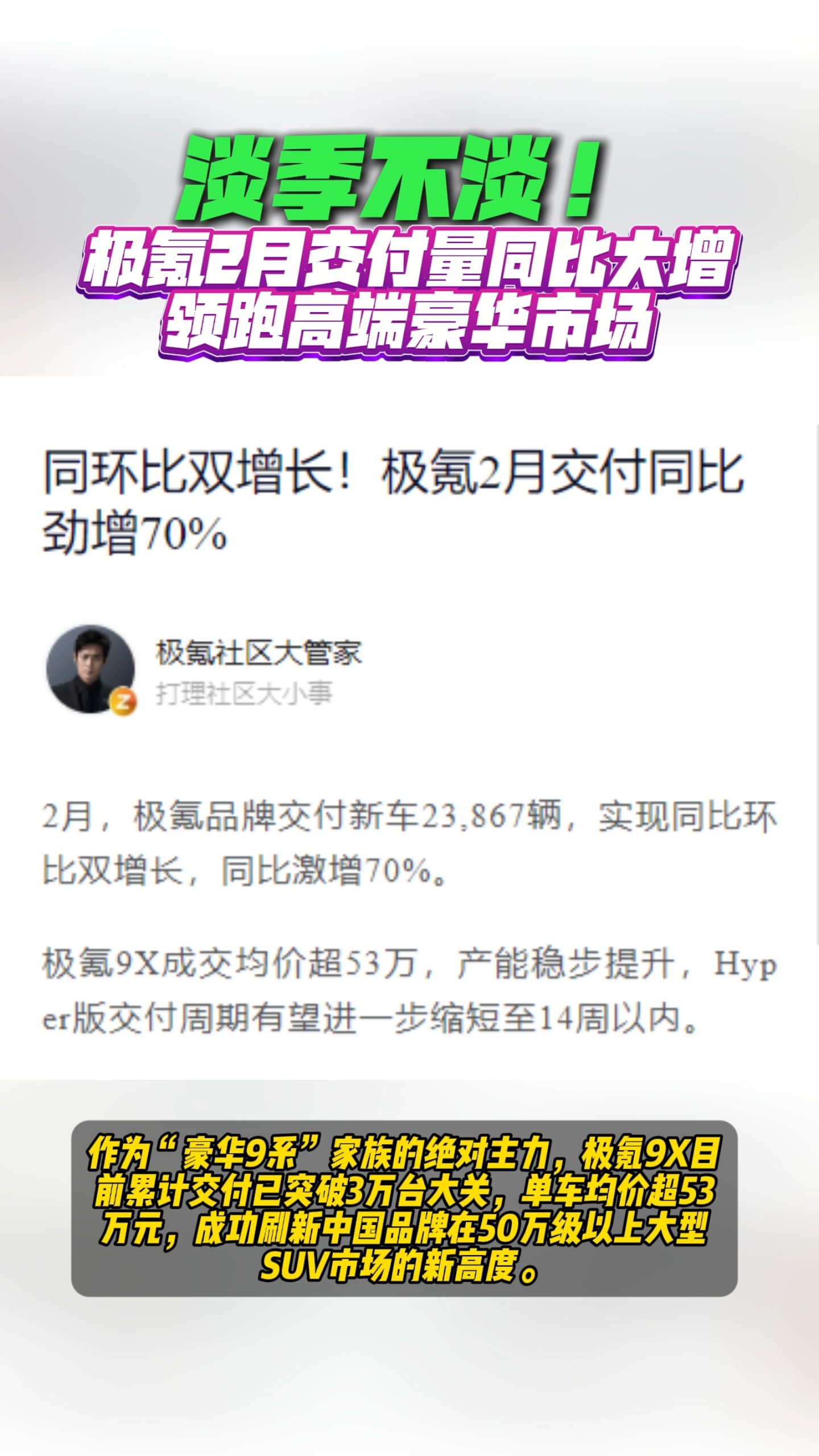 淡季不淡!极氪2月交付量同比大增领跑高端豪华市场