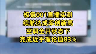 极氪001直播实测续航达成率创新高,空调全开状态下完成83%