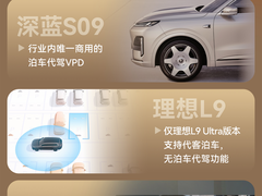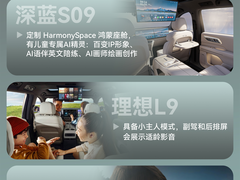 深蓝S09满载爱与智能,驶向家庭幸福 家庭出行的每一段路,都承载着爱与期待,深蓝S09便是这美好旅程的最佳伴侣。预估价30-35万搭载乾崑智驾ADS 3.3+鸿蒙座舱,与理想L9、问界M9携手跻身智驾第一梯队。整车的智能属性直接拉满,可实现车位到车位,全程智驾,让驾驶更轻松,行业内唯一商用泊车代驾VPD和行业唯一离车泊入,支持障碍物挪开即停,提升停车便利性,解决停车烦恼。行驶时,深蓝S09在城市和高速路况下都能应对自如,减轻驾驶负担。座舱内,前排有双15.6英寸2.5K超高清双屏与43英寸AR - HUD抬头显示屏强势助力驾驶者轻松应对各种路段。安全方面,前向主动安全刹停速度均高达120km/h为出行提供坚实保障,重新诠释全尺寸大6座SUV的价值内涵。