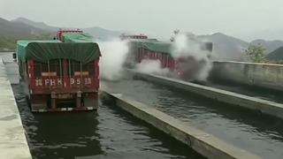 大货车刹车盘的温度这么高?进水里才知道