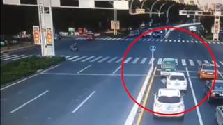 监控拍下的诡异车祸,交警看了10遍,都没看出是谁撞了人