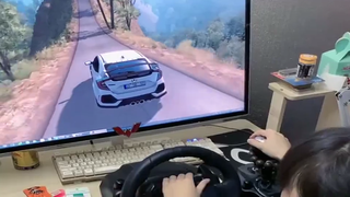 女司机在狭窄的山路上,模拟开思域,就这技术一看就是马路杀手