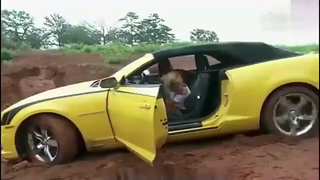 女司机神操作,开跑车开进泥潭,好心疼跑车!