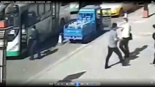 男子刚准备坐公交车,后面的公交车就猛烈撞击前车,引发连环车祸