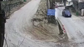 不愧是女司机,排水渠过弯躲避路人,车子冲了出去