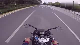 骑摩托车在高速路上飞驰,你们能看到这个速度是多少吗