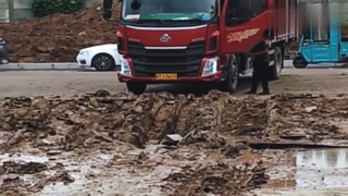 明明看着路不好还非要走,大货车这不就是给自己找麻烦吗!