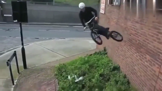 美国纽约的男子勇气可嘉,骑车跳跃摔倒在地,车技还是很优秀