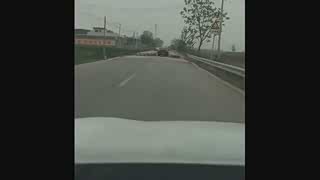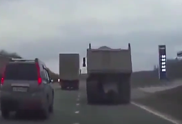 两辆大货车擦肩而过,撞得满地碎片,视频车被殃及池鱼