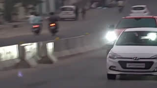 在街上乱开车,旁边的自行车都倒了!