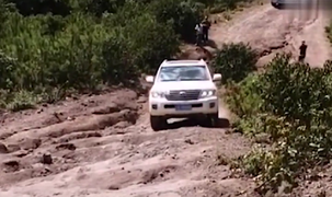 行车记录仪:4.0排量丰田酷路泽爬坡,说上就上完全没有压力