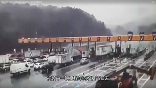 惨烈!猖狂工程车上高速直接把收费站带走,看完监控腿都吓软